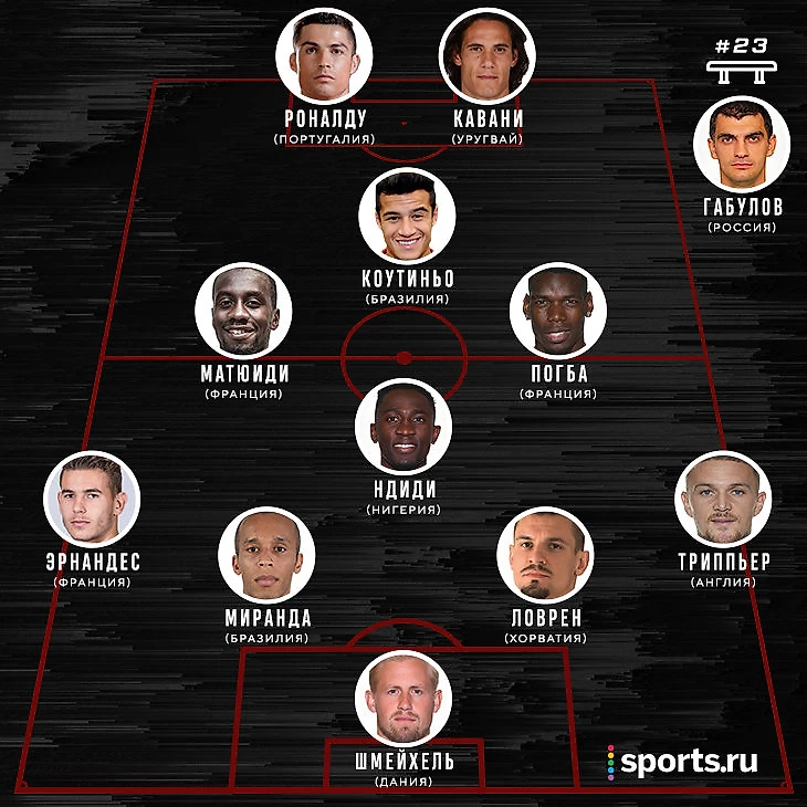 Запасные: Шмейхель – Триппьер, Ловрен, Миранда, Люка Эрнандес – Ндиди, Погба, Матюиди, Коутиньо – Кавани, Роналду. И Габулов.