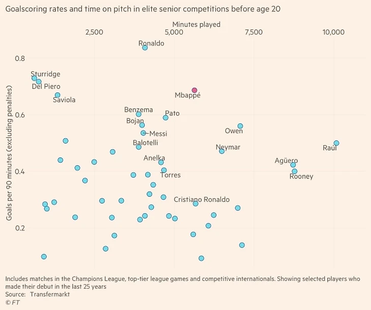 Тут только результативность, но даже она подчеркивает пропасть между молодым Роналдо и любым талантом современности. Сейчас в футболе нет даже плохих аналогов молодого Роналдо. Во время ЧМ Килиан Мбаппе сделал пару трюков, которые напомнили о бразильце, но это другой уровень. По обращению с мячом на скорости Мбаппе и Мо Салах иногда приближаются к нему, но их роль намного более узкая, частота магии – и близко не такая.