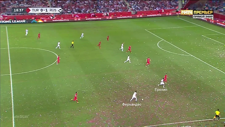 4. Самая хорошая для России новость – продолжение подвигов Фернандеса в двойной роли. Ерохин освобождал ему фланг и при подключениях в атаку Марио исполнял дополнительного вингера, с чем совершенно не справлялась турецкая оборона (например, в первом голе). Защитник ЦСКА чаще всех получал мяч и отдал больше всех передач (среди игроков сборной России).