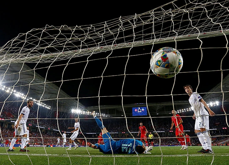 Для команды, которая хороша в первую очередь без мяча, Россия просто ужасно обороняется глубоким блоком. На ЧМ это тоже проявлялось. Команда комфортно чувствует себя, когда соперник владеет мячом – и его можно прессинговать на чужой половине или в середине поля. Но при обороне без прессинга Россия паникует. На ЧМ главным подобным испытанием был матч с Испанией. Россия перешла на 3 защитника, но все равно допустила кучу моментов – от Игоря Акинфеева потребовалось 9 сейвов.