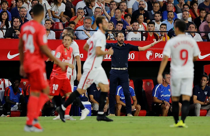 «Севилья» образцово вскрыла проблему. Качества тройки полузащитников идеально подходили для этого. Банега шикарно пасует, Франко Васкес отлично держит мяч под давлением, а Сарабия очень подвижен и всегда готов убегать в контратаку в качестве дополнительного игрока.