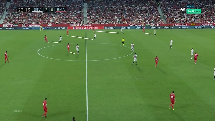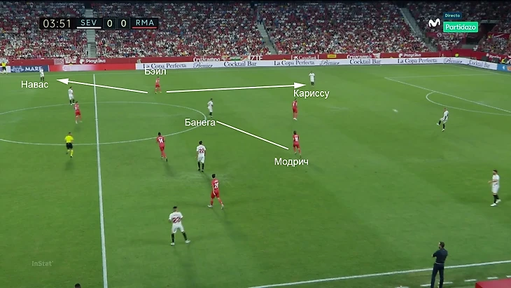 В данном случае даже перевод не был хорошим вариантом, потому что у «Мадрида» не было ширины справа. Там располагался Начо, который не очень хорошо поддерживает атаку. «Севилье» нужно было лишь обезвредить левый фланг. Они это очень уверенно сделали.
