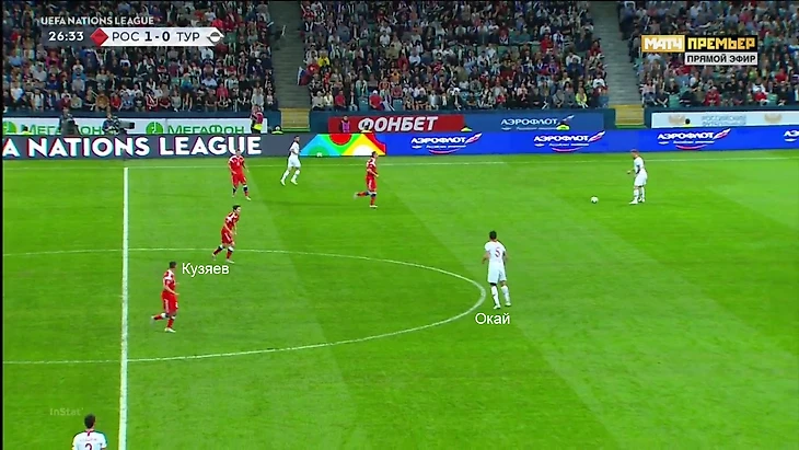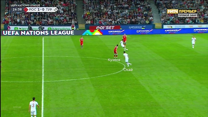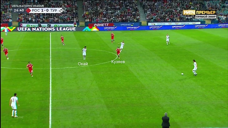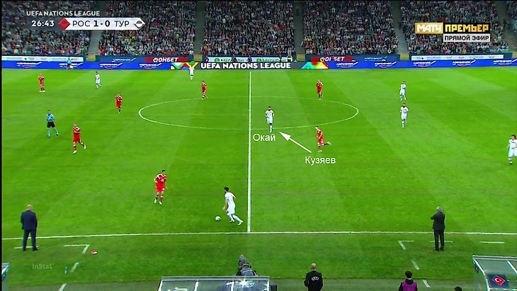 В первом тайме прошлого матча Россия здорово сдерживала Турцию, в том числе в центре поля. Во втором начались проблемы – главным виновником был Окай Йокушлу. Его умное движение и продвижение мяча перевернули ход матча и заставили Россию волноваться. Главной задачей Кузяева была нейтрализация опорника «Сельты». Он либо оказывал давление на него, либо перекрывал линию передач, либо передавал его партнеру. Шикарно справился.