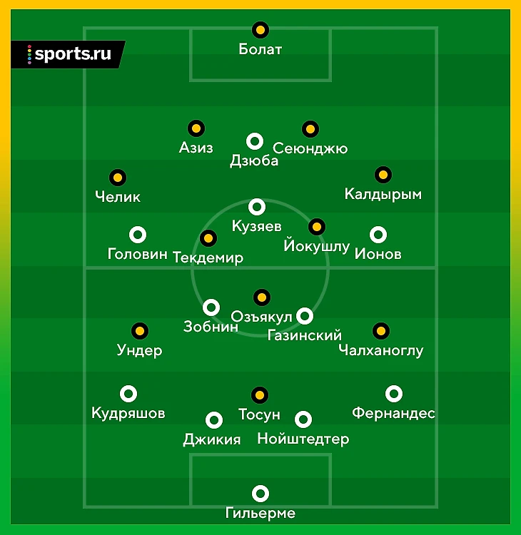 3. Помимо классики, были меткие подстроения под конкретного соперника. Федор Кудряшов вместо Константина Рауша, Александр Головин – на левом фланге, Далер Кузяев – под Артемом Дзюбой.