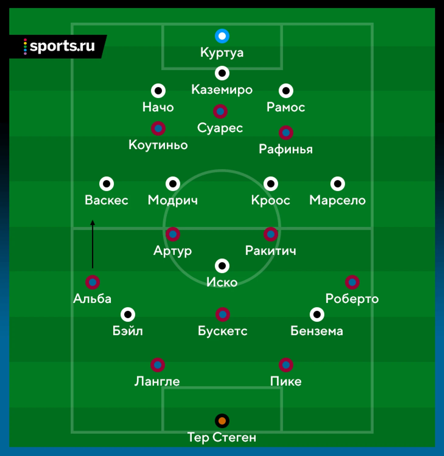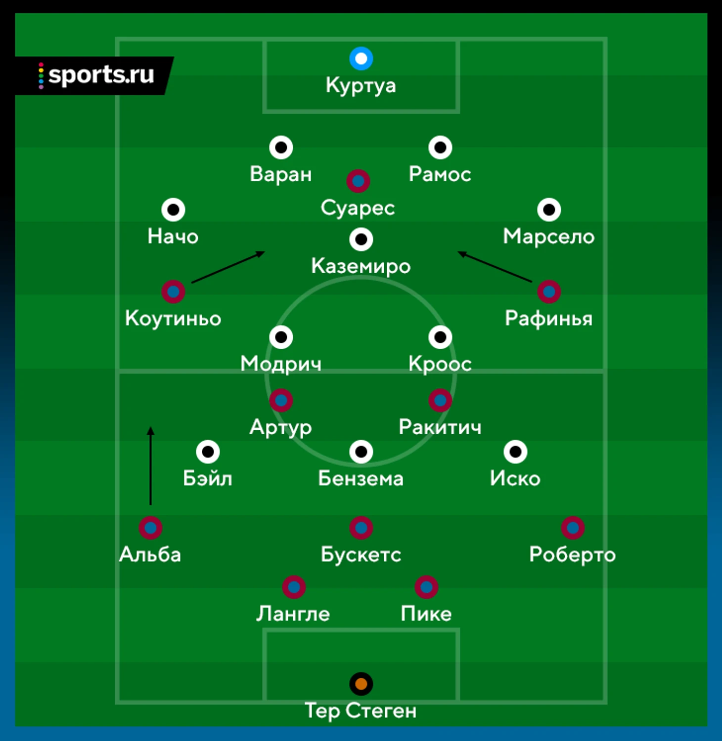 Изначальная ставка на Рафинью на позиции Месси, который дал больше возможности для игры в полуфлангах и использования недостатков «Мадрида» на флангах. Своевременный выход Усмана Дембеле, который сразу же организовал гол в контратаке и потом ассистировал Артуро Видалю. Видаль – тоже качественная замена, хотя его гол не был важен для хода матча.