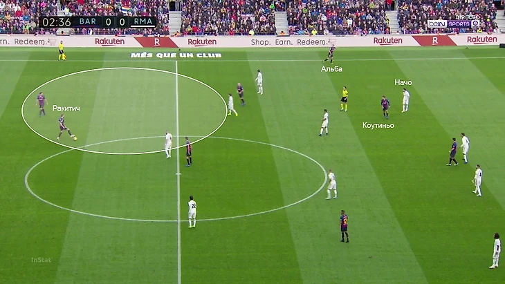 Система «Реала» подставляла фланговых защитников Начо и Марсело. Им регулярно приходилось следить и за крайним защитником соперника (Альба и Роберто), и за прямым оппонентом (Коутиньо и Рафинья).