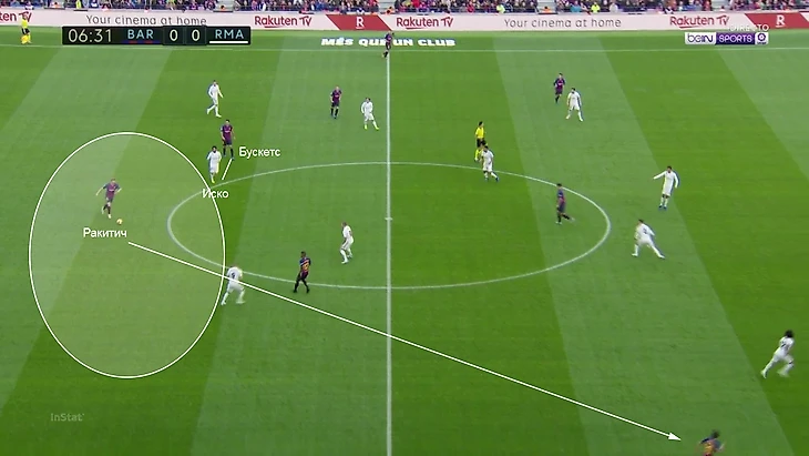 5. Иван Ракитич блестяще сыграл скрытого плеймейкера «Барсы». «Мадрид» не оказывал давления на полузащитников «Барсы», но Серджи Бускетса постоянно перекрывал Карим Бензема (или Иско, когда они менялись местами). В таких условиях Ракитич и Артур получали больше свободы, именно хорват опускался поглубже для розыгрыша, откуда задавал направление атак. Тактика «Реала» банально недооценивала качество передач Ракитича.