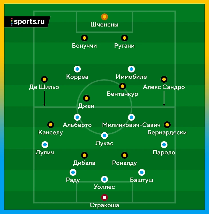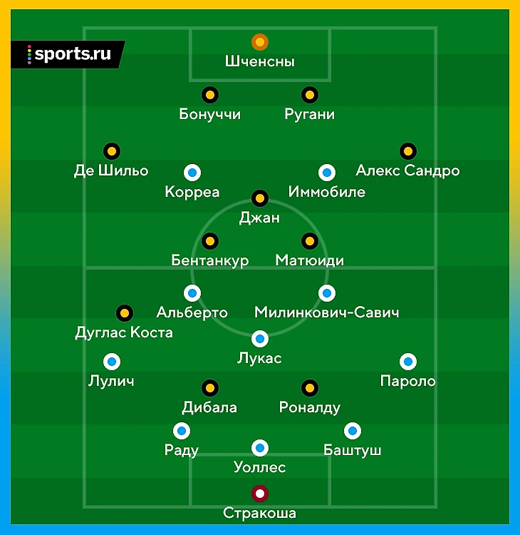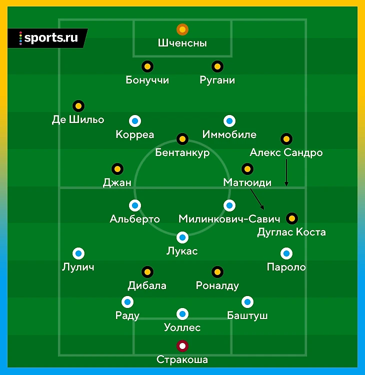 В перерыве Макс Аллегри не сделал замен, но сильно изменил схему. Разыгрывающим опорником стал Бентанкур (не Пьянич, но намного лучше Джана). А в атаке «Юве» надавил на фланг Пароло – для создания ширины там постоянно располагались два левоногих игрока (Сандро и Коста). Матюиди (тоже левша) делал фирменные рывки в направлении этого края.