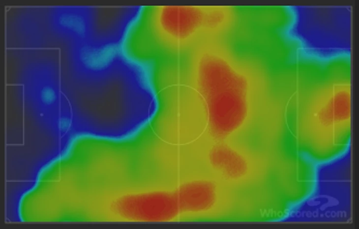 Вот карта ударов после 70 минут. Всего 1 дальний заблокированный удар Родриго Бентанкура у «Юве» против 15 у «Лацио»: