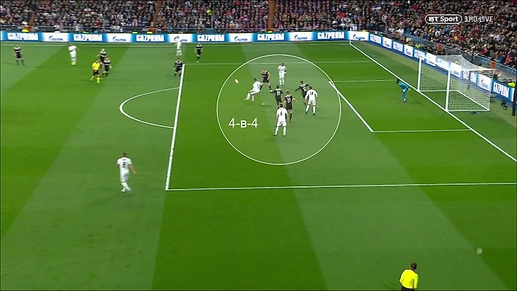 Такой расклад рождал эпизоды максимальной раскрытости. Если момент оставался за «Мадридом», то получалась убойная ситуация в штрафной – например, 4-в-4 с преимуществом «Реала» в габаритах: