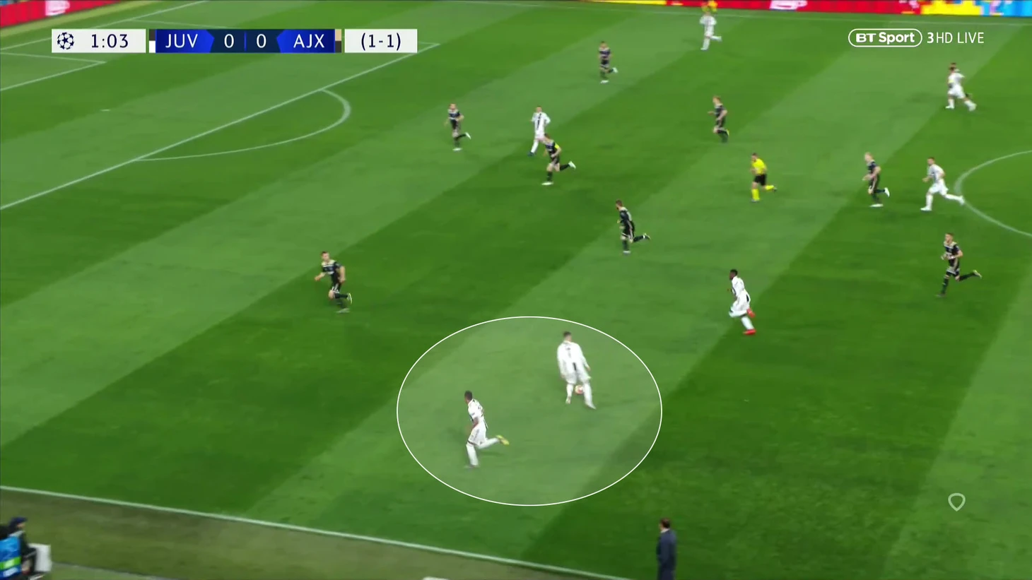 Миралем Пьянич выдвинулся в прессинг, Роналду традиционно высоко, Матюиди оказывается 1 против 2 в большой свободной зоне – и ничего не сможет сделать:
