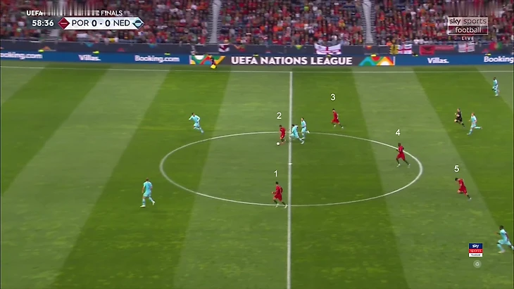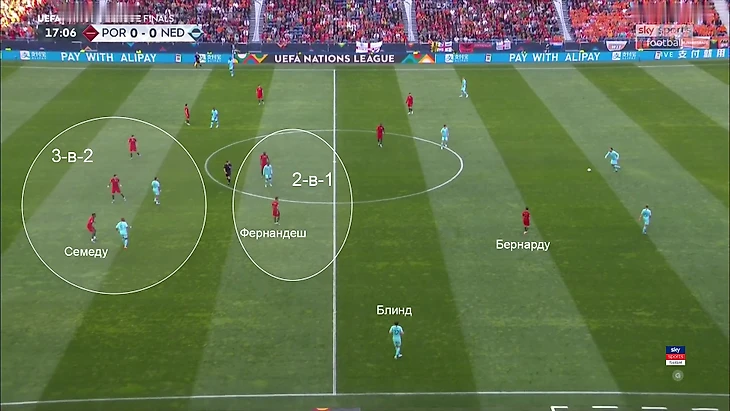 Позиция Блинда в этом эпизоде не создает проблем Португалии – у них численные преимущества в ключевых зонах: