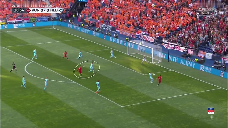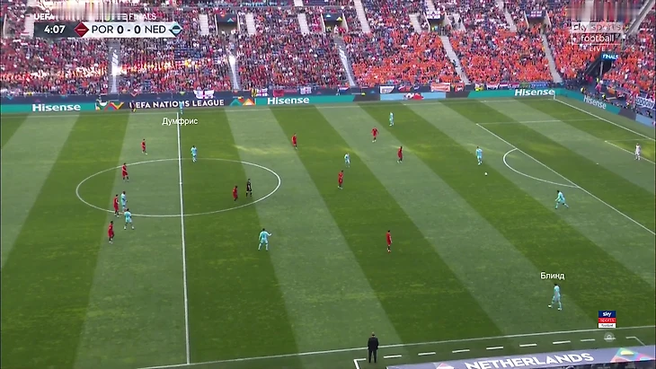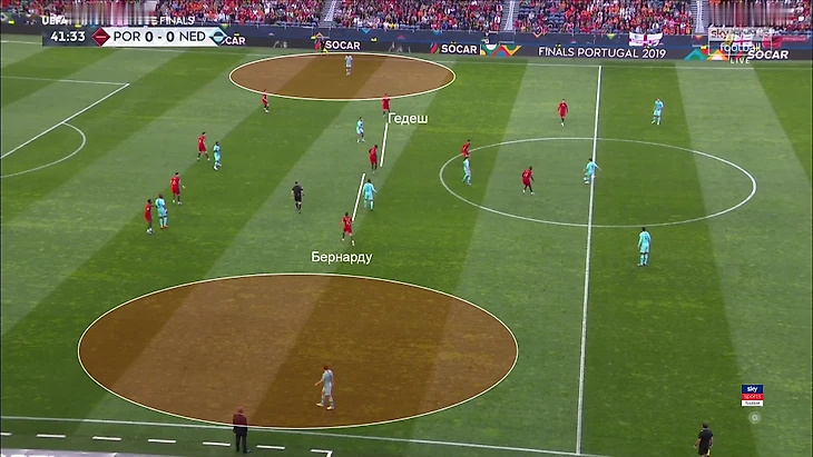 Из-за такой позиции Блинда Бернарду чаще оставался повыше – иногда включался в прессинг, иногда просто был в лучшей позиции на случай контратак. Голландия не наказывала.
