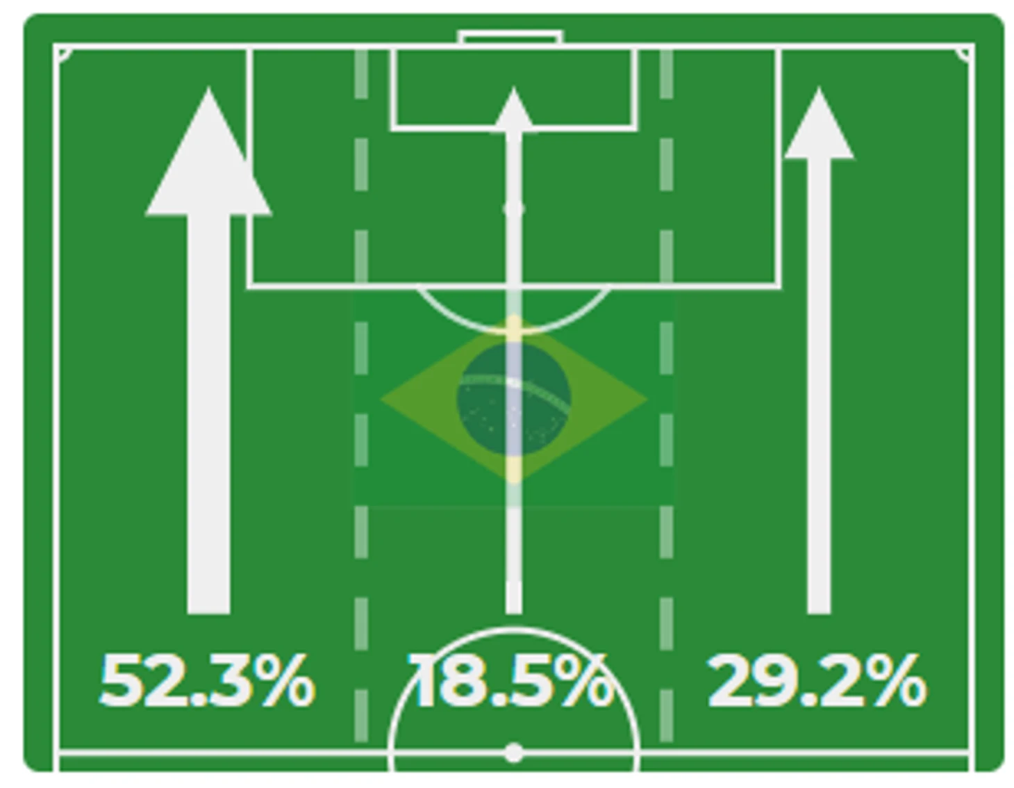 5. Распознав слабости Перу, бразильцы очень умышленно давили на фланги. Лишь 18,5% атак проходили через центр – упор на края был невероятным.