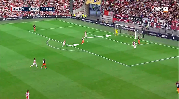 Не менее волшебный комбинационный гол был у «Аякса» и в предсезонке. Ключевые аспекты стиля никуда не пропали, потому что на месте остался великолепный Эрик тен Хаг.