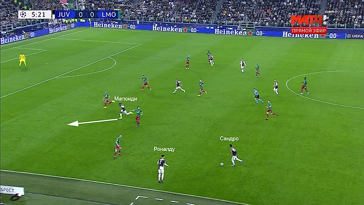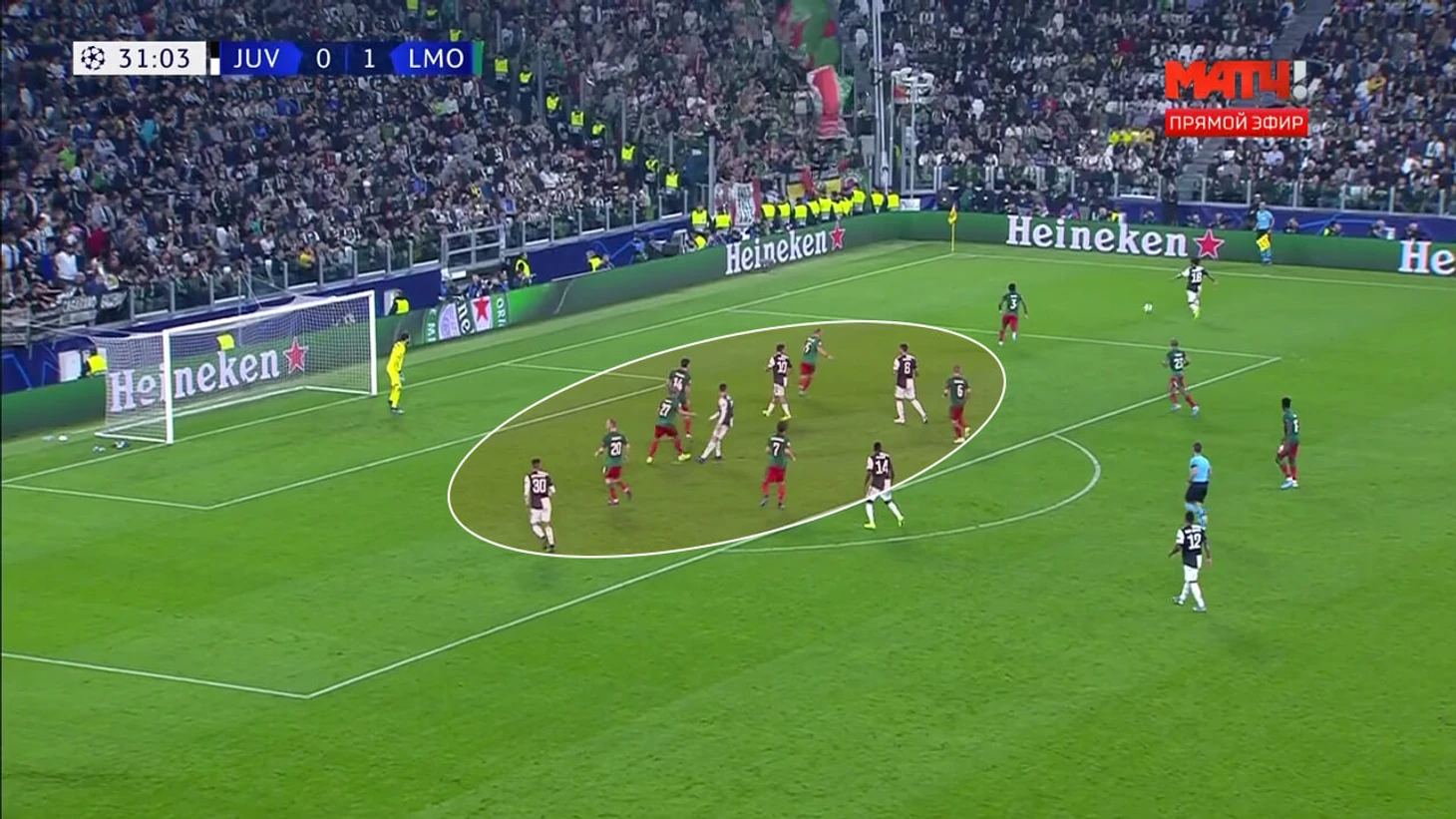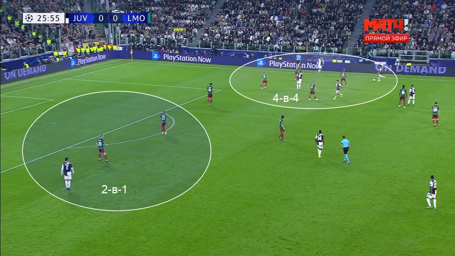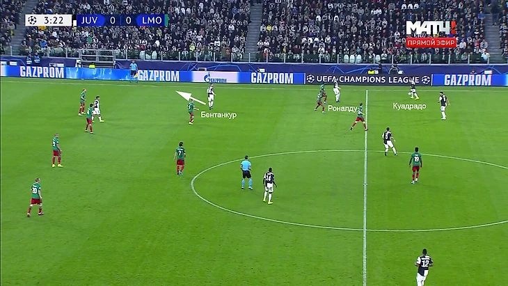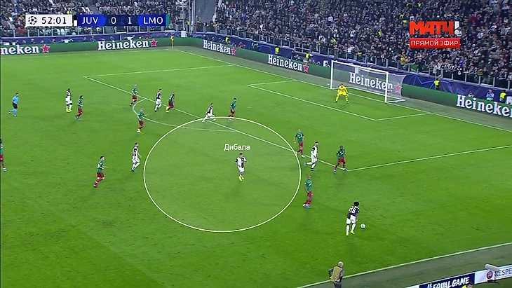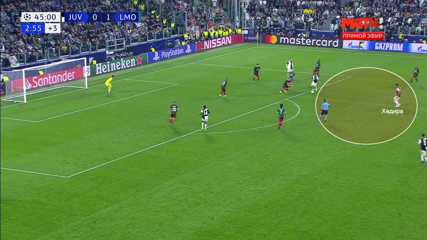 На практике такой выбор (ведь нельзя перекрыть абсолютно все) был логичным и оправданным. По двум причинам. Первая – «Юве» изначально собрался атаковать иначе, поэтому часто не замечал и не использовал это пространство. Вторая – Бентанкур, Хедира и Матюиди плохо используют такое пространство, а Дибала, который мог бы наказать, играл нападающего (реже оказывался в этих зонах). Такой расклад вполне устраивал «Локо».