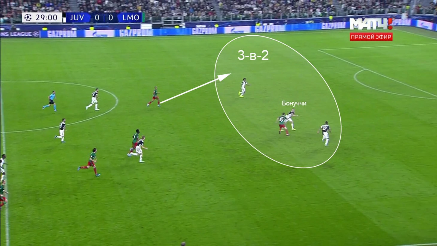 У «Юве» все еще было преимущество 3-в-2, но Леонардо Бонуччи тоже сыграл слишком агрессивно и неудачно.