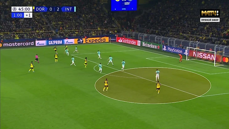 «Дортмунд» отдал мяч – 60% владения «Интера» (явный контраст с остальной частью матча – 65% у «Боруссии»). Но вполне уверенно сдержал соперника.