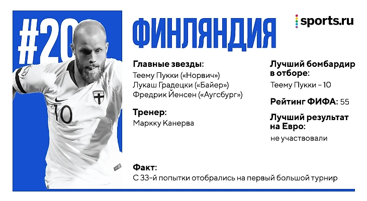 Финляндия – сочетание простоты и эффективности. Без мяча неплохо играют в компактные 4-4-2. С мячом заточены на использование сильных сторон Теему Пукки – он блестяще открывается на линии офсайда, партнеры максимально часто ищут его такими передачами и постоянно создают ему поддержку (другой нападающий пытается растянуть защиту соперника).