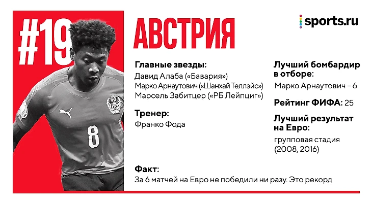 Лишь к концу квалификации Австрия определилась со схемой – 4-2-3-1. Эта схема используется для прессинга и направления атак соперника в нужную зону. В атаке команда Франко Фоды предпочитает играть максимально вертикально, но Марко Арнаутович (нападающий) и Марсель Забитцер (десятка) за счет взаимодействия неплохо взламывали и глубоких соперников.