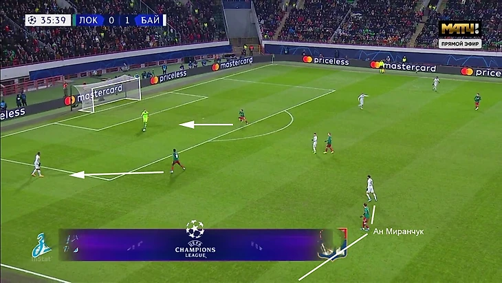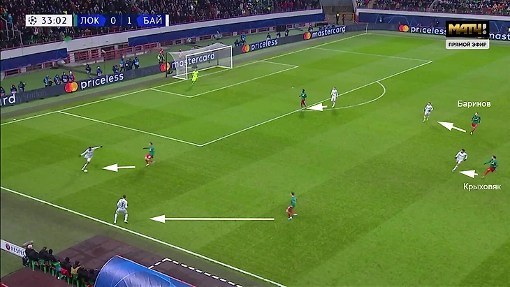 Если прессинг при позиционных розыгрыша «Байера» был слаженным, то давление сразу после потери мяча в своих атаках у «Локо» было хаотичным.