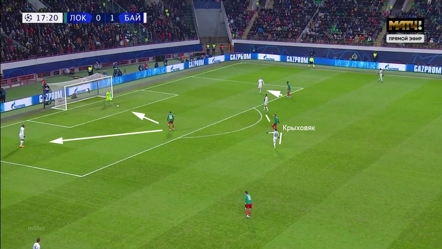 Задача «Локо» в прессинге сводилась к следующему: перекрыть сопернику все варианты около мяча, используя 5 игроков (атакующая четверка плюс Гжегож Крыховяк) против 6 соперников (четверка защитников плюс два опорника) и вратаря.