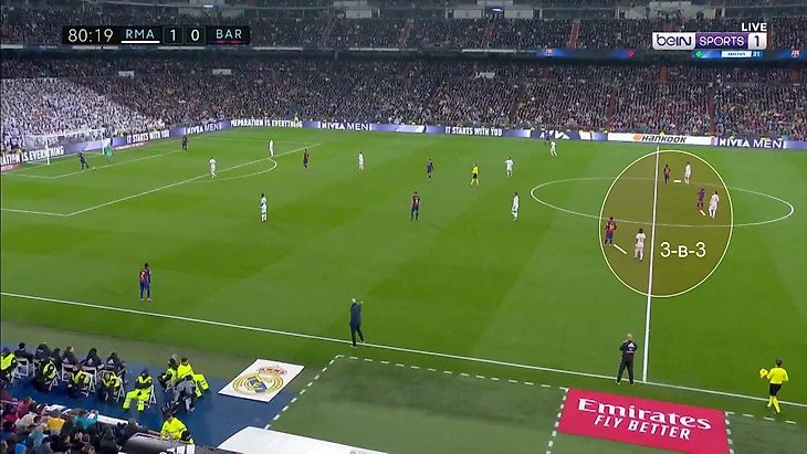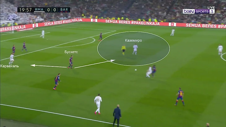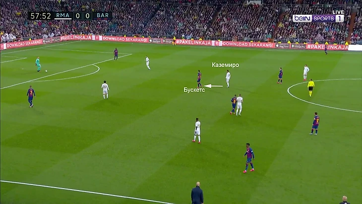 Из-за этого решения Бускетса пугающе свободным остался Каземиро в центре поля. Именно через свободного бразильца «Реал» пройдет давление и организует опасную атаку: