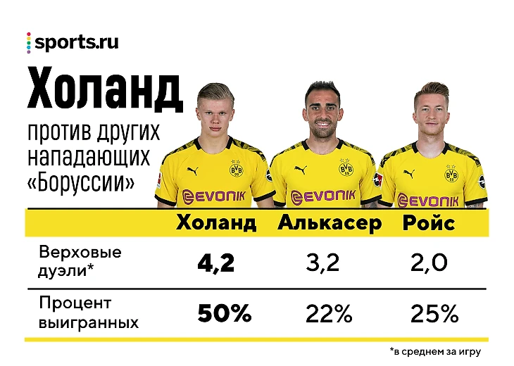 То есть на деле его вклад в такие эпизоды даже выше, чем кажется из чистой статистики верховых. Не забываем и про подборы – защитники, как правило, не контролируют, куда летит мяч после борьбы (Холанд нагружает их даже в формально проигранных дуэлях).