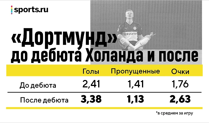 Норвежец преобразил не только атаку, но и всю игру «Дортмунда». Выборка матчей после его дебюта (всего 8 игр Бундеслиги) – слишком мала. Из-за этого показатели завышены, но такой контраст все равно нельзя игнорировать: