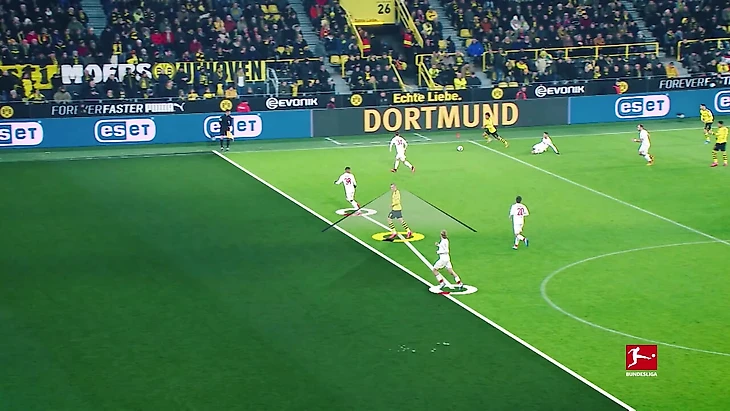 В таких эпизодах важна регулярность (не каждый раз он получает пас, но всегда должен искать момент), своевременность рывка (не попасть в офсайд) и партнеры, которые знают о рывках и замечают их. В случае «Дортмунда» и Холанда есть все компоненты.