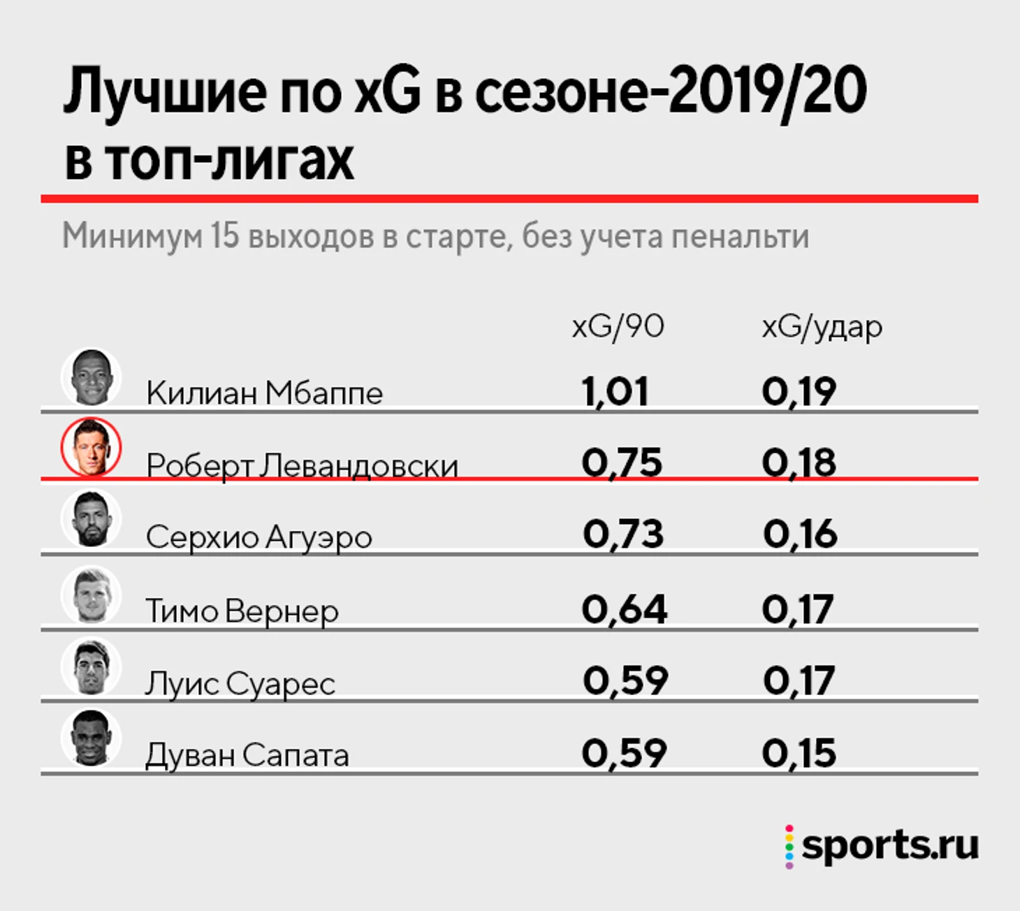В 2018/19 он набрал 28,0 xG при 22 голах. 6,0 – это самое большое отрицательное расхождение в европейских топ-лигах. Никто другой не забрался за 5. Это аномалия. По итогам кампании у нас было два варианта трактовки ситуации. Первая: Левандовски – бревно и худший завершитель атак в мире, у которого есть моменты, но нет техники завершения. Вторая: в конкретный год ему дико не везло, но он в одном шаге от суперформы – при игре на таком же уровне в будущем он всех уничтожит.