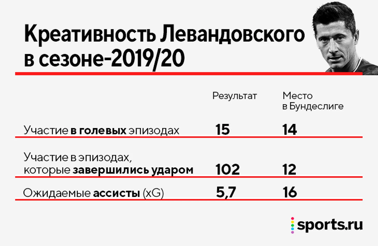 В последний год в «Дортмунде» поляк делал 28 пасов за игру – больше, чем в любой сезон в «Баварии» (и не так далеко от результата Фирмино – 32). И отдавал больше 2 передач под удар за матч – тоже его лучший результат в карьере. За последние 3 сезона в «Дортмунде» он сделал 19 голевых пасов против всего 14 за 4 первых сезона в «Баварии» (до обретения дополнительной свободы при Коваче).