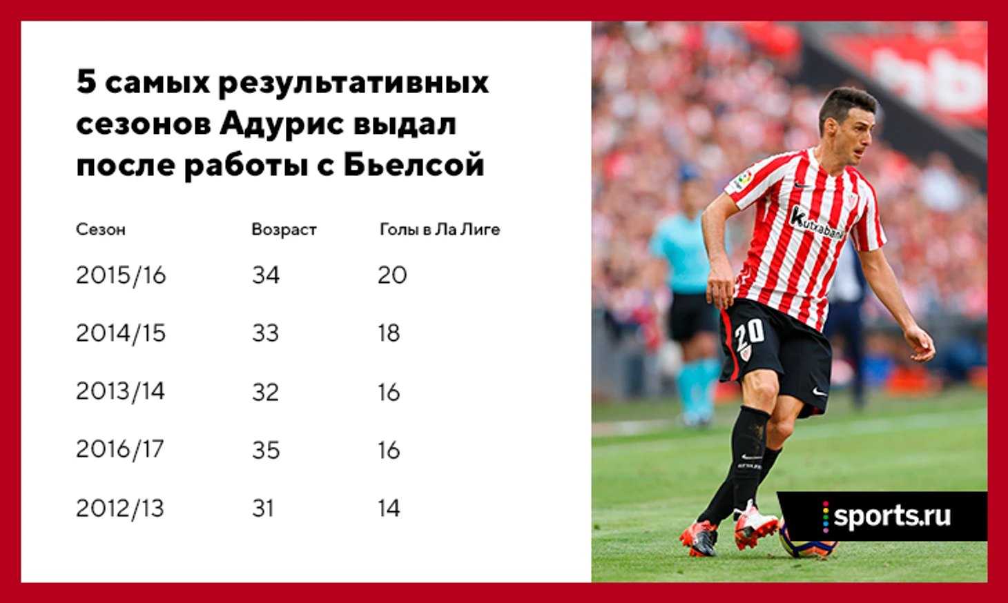 Перерождения именно в 31 (год старения у обычных футболистов) – отчасти совпадение. При определенном стечении обстоятельств могло состояться чуть раньше. Важнее, как именно изменилась его игра и почему. В карьере нападающего «Атлетика» есть четкая поворотная точка – возвращение в «Атлетик» в 2012-м, где он встретил Марсело Бьелсу.