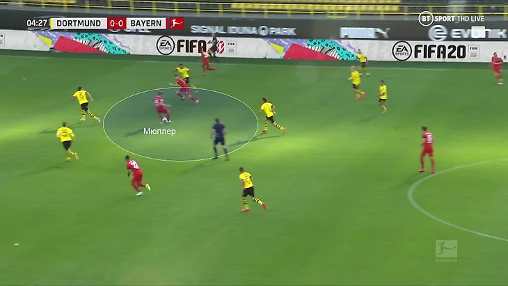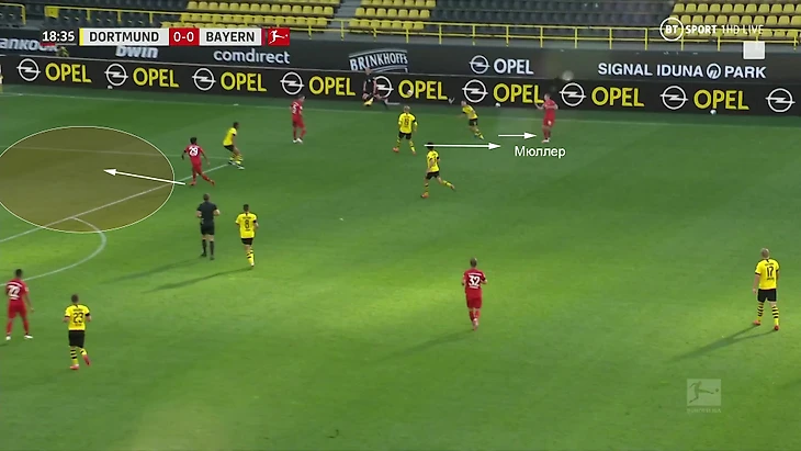 Атака развивалась именно так, как просил Мюллер. По ходу эпизода на него попытались переключиться и Дилэйни, и Хуммельс, но из-за идеального движения никто не успел. Томас свободен и делает обостряющий пас на Левандовского: