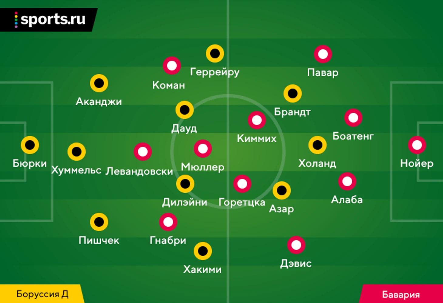Тактических сюрпризов не было: 3-4-2-1 «Дортмунда» против 4-2-3-1 «Баварии».