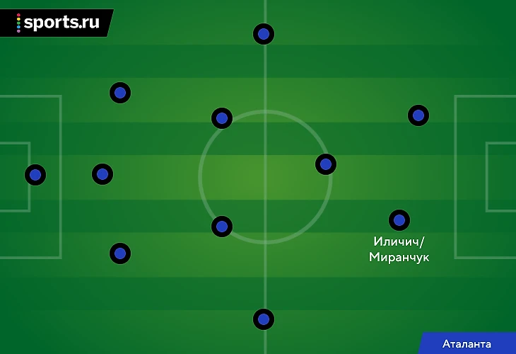 Иличич стартует вторым нападающим, но на практике доминирует в правом полуфланге. Миранчук не играл в такой роли, но по зоне обитания и набору качеств из всех позиций в схеме «Аталанты» эта подходит ему лучше всего.