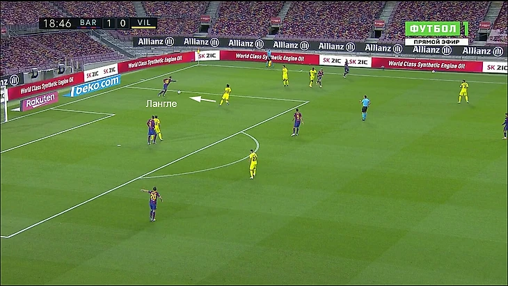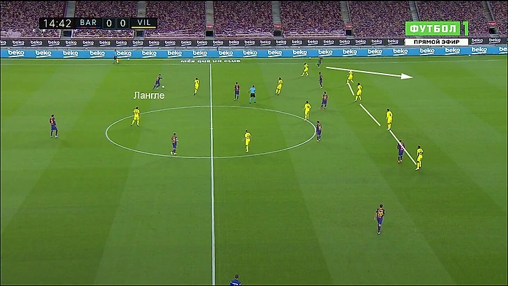 Второй гол тоже не был следствием новых идей. Получив быстрый гол, «Вильярреал» почувствовал необходимость прессинговать до центральных защитников. Лангле максимально комфортно чувствовал себя и в этом сценарии. Он снова организовал предголевой и ключевой для развития быстрой атаки пас: