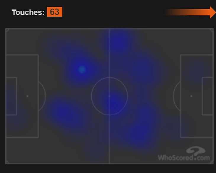 Еще он здорово адаптировался под позиции партнеров. Атакующая четверка «Баварии» имела свободу для постоянной смены позиции. Ее инициировали другие (Левандовски, Мюллер, Коман), а Толиссо всегда дисциплинированно адаптировался. Делал так, чтобы ни одна зона не пустовала. Эта работа хорошо прослеживается через его тепловую карту: