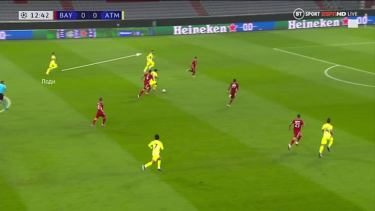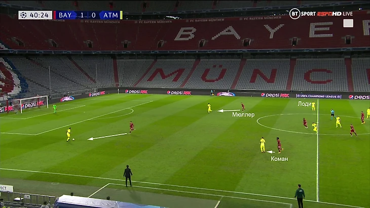 Иногда Лоди получал свободу из-за того, что Мюллер застревал в прессинге ближе к центральной зоне: