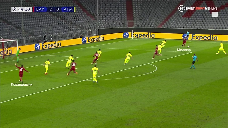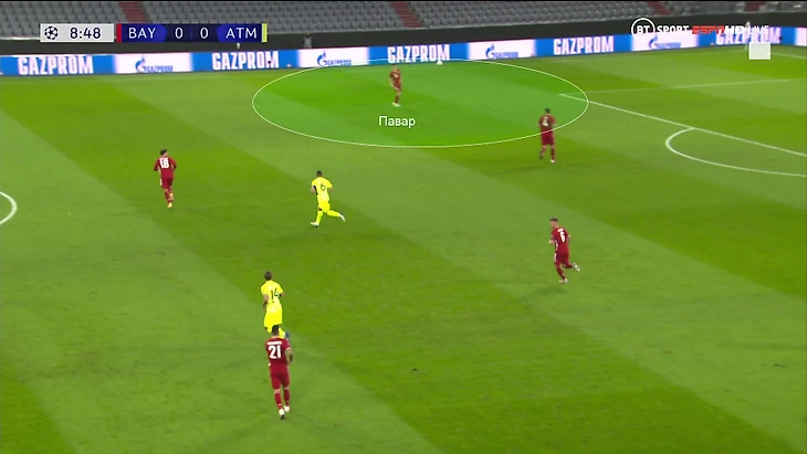 8. По меркам «Баварии» это были дыры в конкретной зоне. Обычно они не делают соперникам таких подарков. Важно разобраться, почему так получилось. Справа у «Баварии» в этом матче оборонялся Мюллер. Он блестяще знает особенности прессинга и обороны на позиции под Левандовским, но на фланге слегка потерялся.