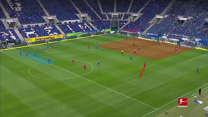 Более того, тройка «Хоффенхайма» в отличие от защитников «Баварии» знает, в какую зону пойдет пас, поэтому старается создать там перевес: