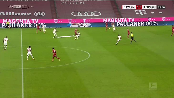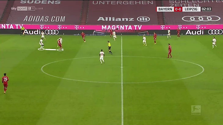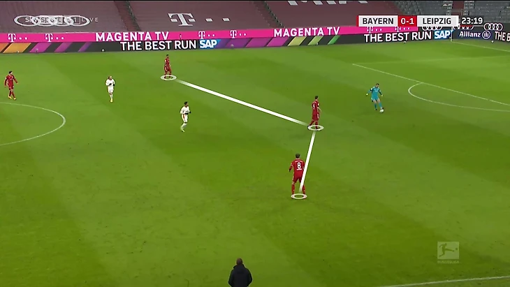 «Бавария» часто обращается к приему с тройкой по ходу матчей. Скорее всего, Нагельсманн ожидал, что рано или поздно это случится – и заранее заготовил реакцию. «Лейпциг» выглядел подготовленным и в рамках этой схемы прессинга.