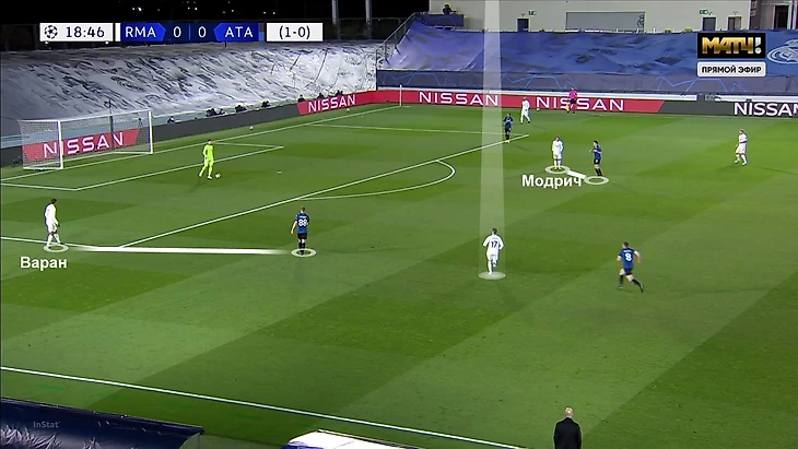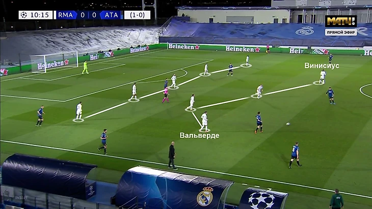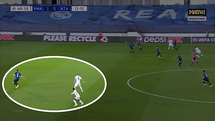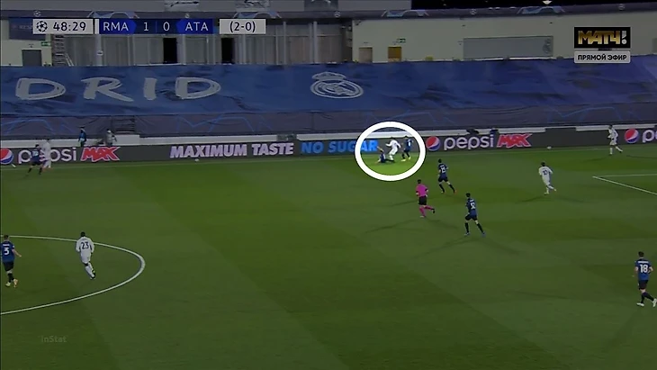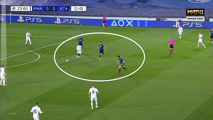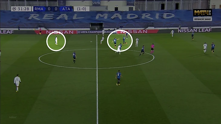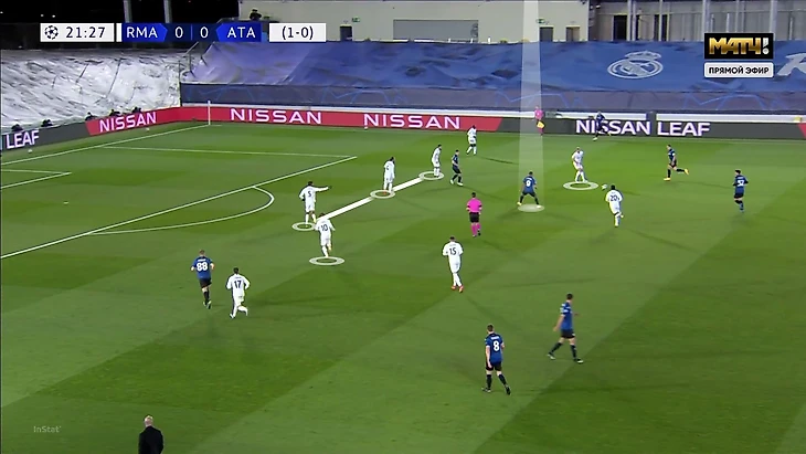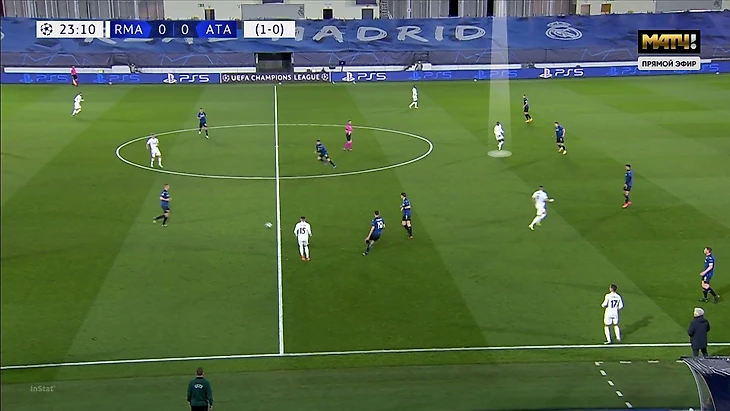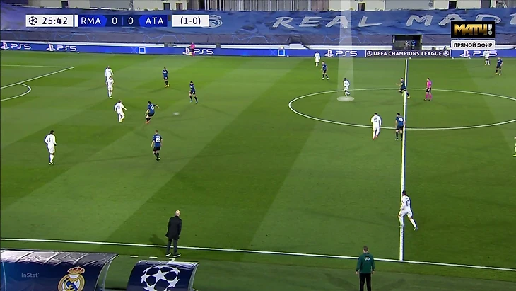 Территориальная картина матча: 34% действий на трети «Реала» против 22% у «Аталанты». Матч проходил у ворот Тибо Куртуа, но это совсем не ощущалось проблемой, потому что в ключевые отрезки (пока не добыли преимущество в два мяча) «Мадрид» отлично держал мяч под прессингом гостей.