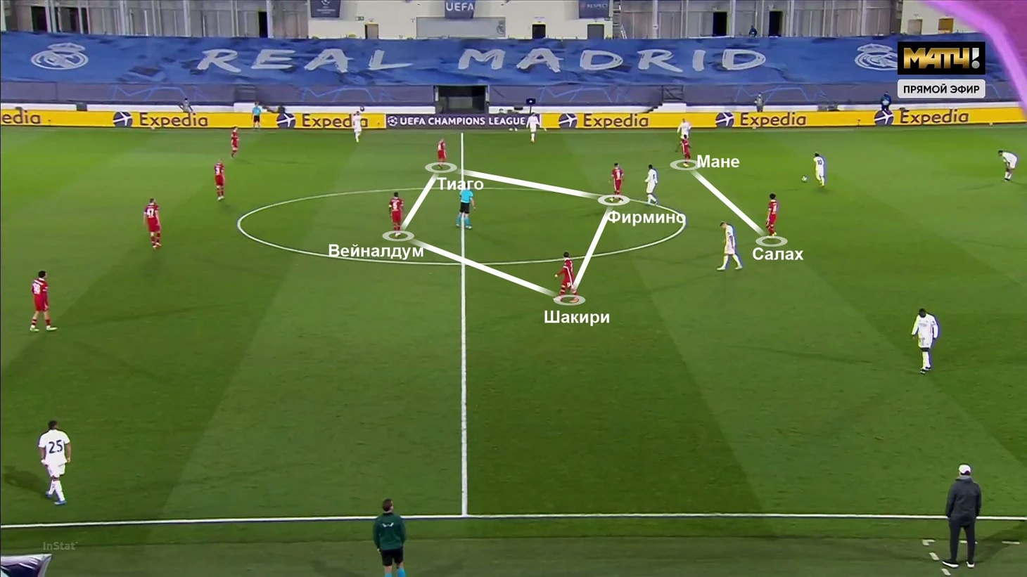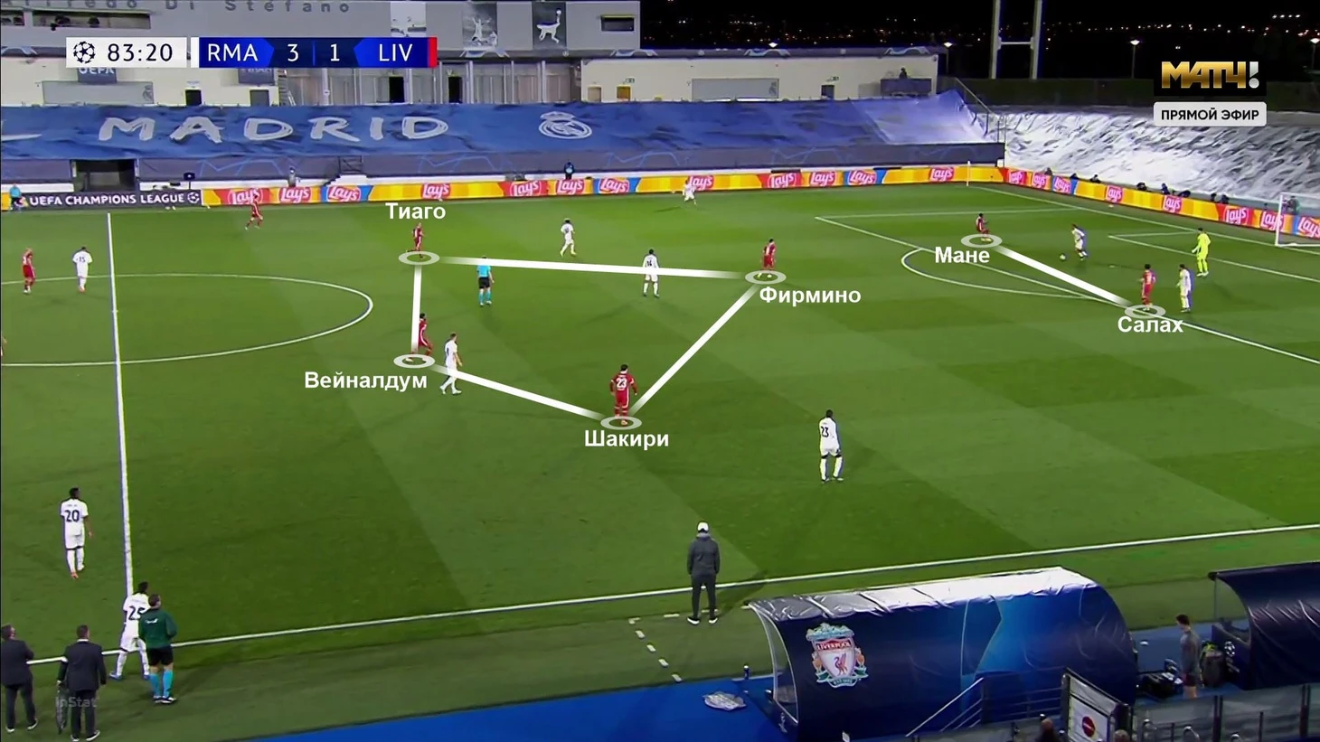 Первый этап – стартовый перевес «Мадрида» за счет прессинга и постоянных открываний за спину высоко расположенным защитникам «Ливерпуля». Этот отрезок завершился со счетом 2:0 в пользу хозяев.