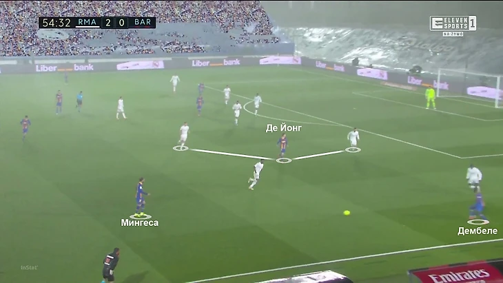 В моменте с голами хаос в обороне «Реала» тоже начался именно с движения на фланге Мингесы-Дембеле с их прямым участием: