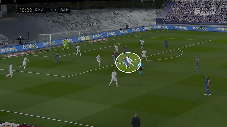 Открытая зона «Барсы» накладывалась на позицию Винисиуса – важнейшего адресата «Мадрида» при контратаках. Бразилец часто получал пугающе много пространства в скоростных атаках.