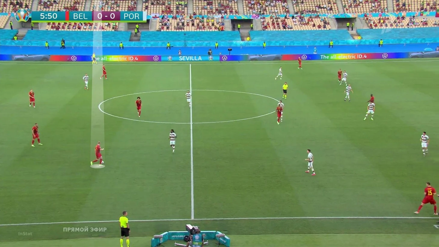 5. Сам по себе ход с передачей мяча Португалии был оправданным. Минус этого приема: Бельгия лишилась возможности владеть столько, сколько привыкла, и строить атаки традиционным образом (даже первый тайм минимально проиграли по владению 48% на 52%). Плюс: Португалия была беспомощна в позиционных атаках (подчеркиваю – именно в первом тайме).