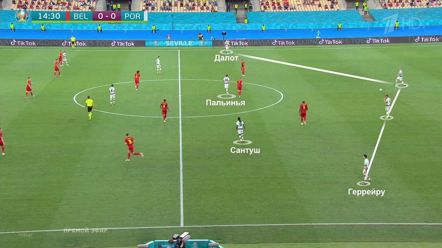 В последние 10-15 минут матча описанная картина вышла на пик. Сантуш бросил на поле еще больше атакующих игроков. И Португалия лучше, чем на других этапах матча, переводила территорию в моменты. Да, без изысков (дальние пасы, навесы, подборы, стандарты), но оборона Бельгии действительно трещала – несколько раз потащил Тибо Куртуа.