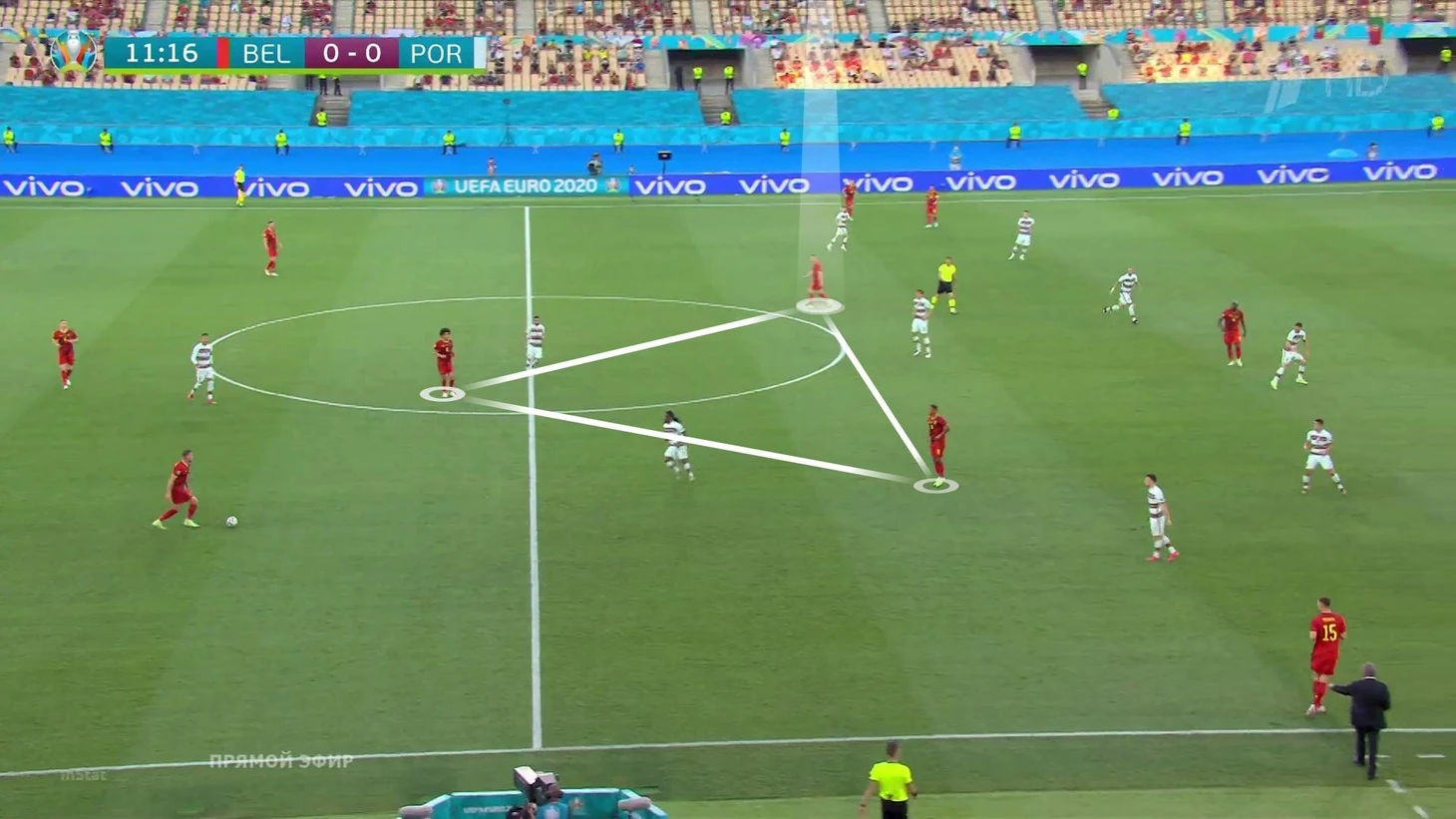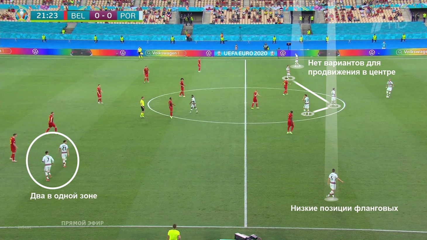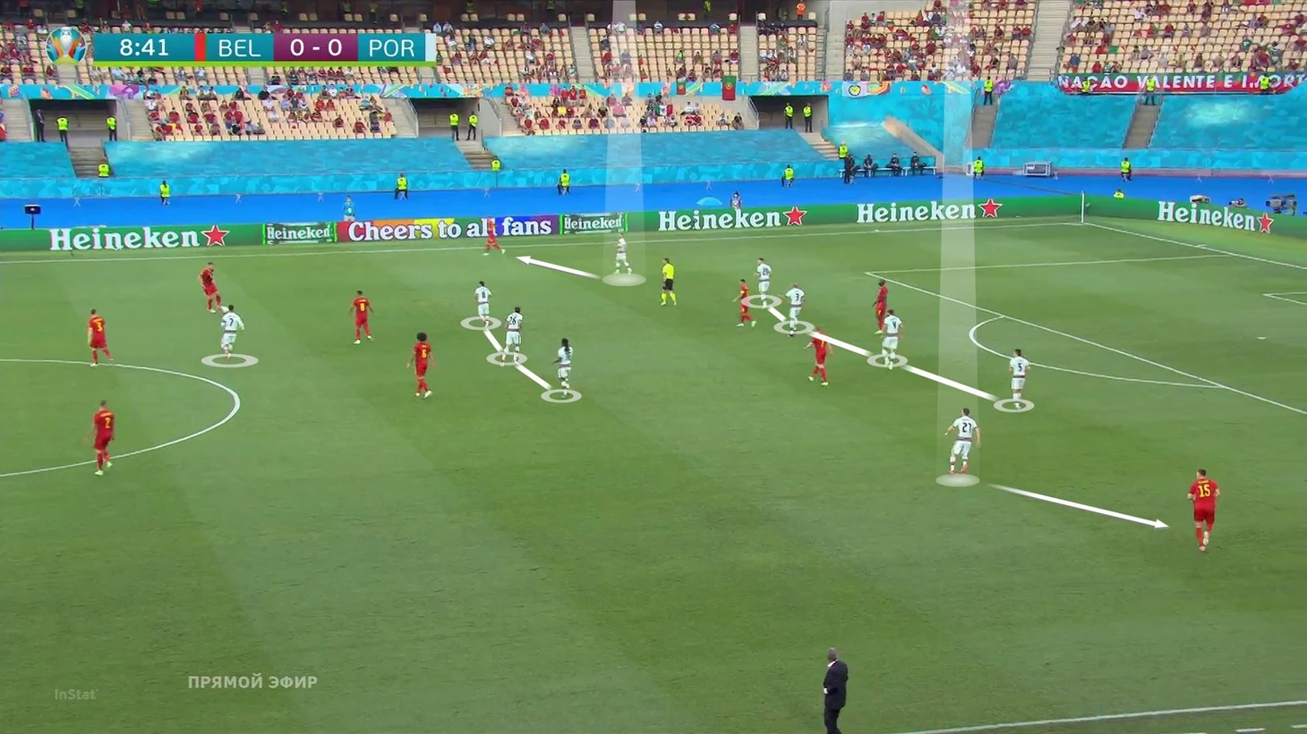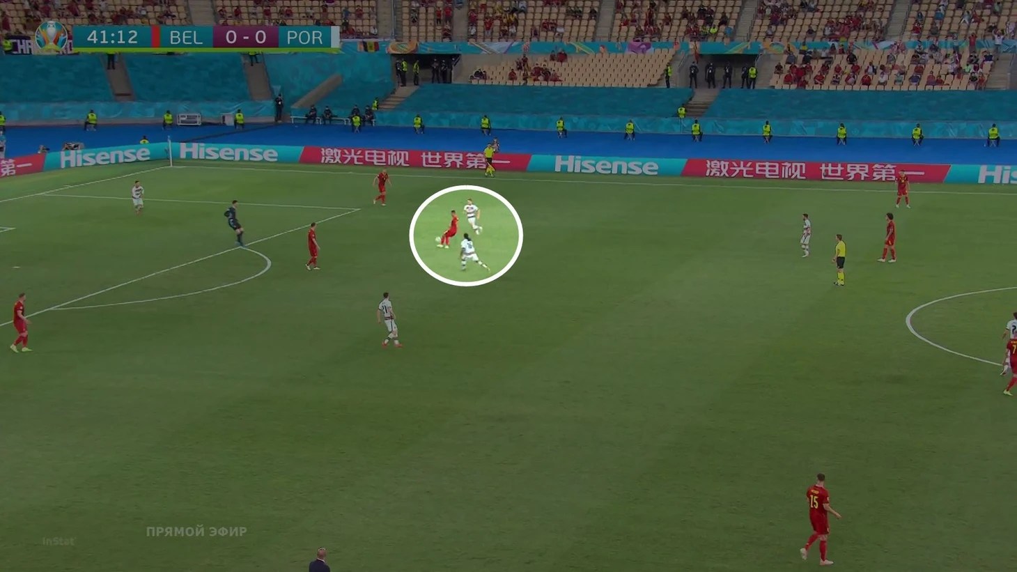 Гол Бельгии – редкая попытка португальского прессинга, в котором чуть застрял Бернарду (Тилеманс классно его выманил – и передал мяч свободному Вертонгену):