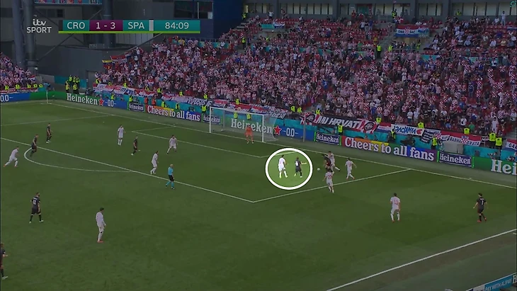 Серджи в касание продвинет на Педри – атака завершится явным голевым моментом. Из-за излишней свободы Лапорта и Бускетса по ходу атаки полузащита Хорватии оказывалась в заведомо проигрышном положении. Испанцам оставалось лишь разыгрывать такие эпизоды.